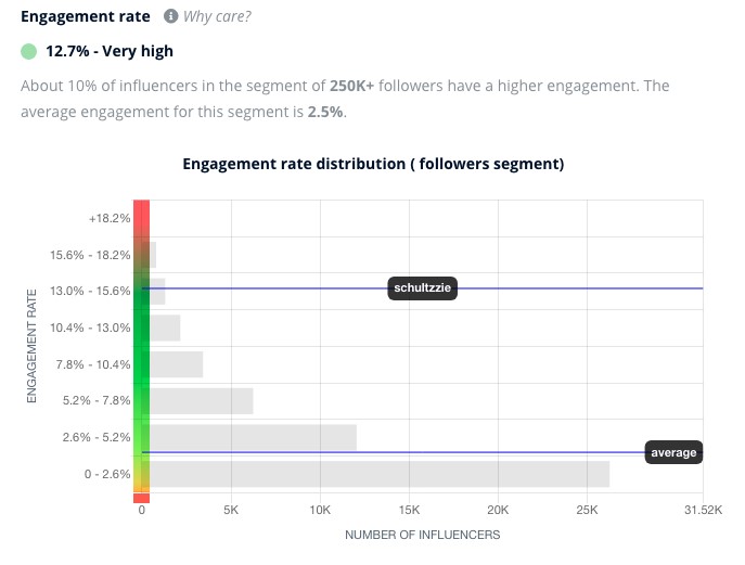 An engagement rate analysis from an influencer marketing platform. Engagement varies based on social network and number of followers, so always compare an influencer’s engagement rate against the average for their peers.